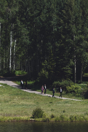 Before we get to the reception, I have to stop and tell you about their Wedding Island. Yes, an island in the middle of land-locked Colorado. Our bride walked over a bridge to join her husband-to-be on a secluded island, surrounded by a lake, pine trees, and one of the most gorgeous backdrops I have seen. Snow, Grand Traverse, Buffalo, and Red Peaks dazzle in the background. I have no idea if Red Peak is named after the hue it takes on during sunset or if that is a coincidence, but it truly is this amazing red beacon of a mountain that made all of our jaws drop. I want to applaud the Vail Nordic and Golf Center for aligning their wedding aisle with these peaks in the background- it looked like a fairytale.